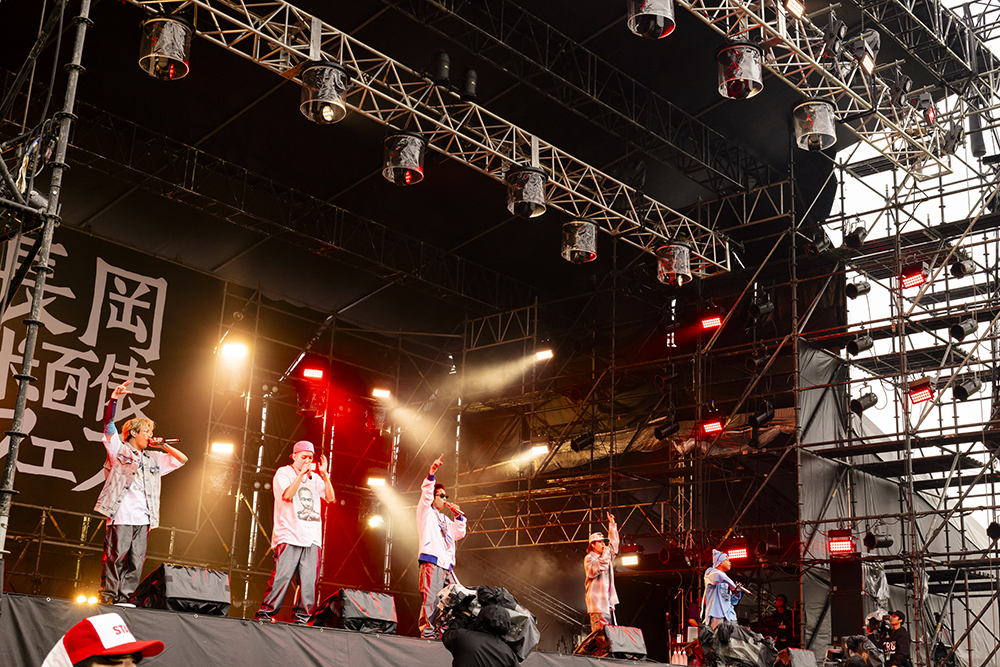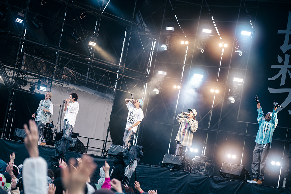 THE RAMPAGEのパフォーマーによるヒップホップユニット「MA55IVE THE RAMPAGE」は、全員がマイクを握る5人組。冒頭の「Who I Am」では、上手から水色のニット帽にサングラスをかけたLIKIYAが現れソロで歌唱。神谷健太、山本彰吾らへマイクリレーをつなげ、それぞれが持つ世界観をしっかりと印象づけた。LIKIYAが「皆さん楽しんでいきましょう!」と滑り出した「No.1」では会場全員とハンズアップで一体に。雨を吹き飛ばすような力強いパフォーマンスで圧倒した。神谷健太は「皆さんと1つになっていきたいと思います。フェス楽しもうぜ!クラップ!」と5人で両手を叩いて、会場を誘うと心地良い「Be Your Man」を投下。メロディアスな歌声とラップ、一糸乱れぬ圧巻のパフォーマンスで、MA55IVEの世界観に引き込んでいた。雨が落ち着いてきた会場には、THE RAMPAGEのフラッグを揺らす人、ハートの型をしたボードに「けんた」と記した推し活グッズを頭上に掲げる人の姿もあった。雨雲が消えた空を見上げた5人は「雨止んだ!ウソでしょう」とビックリ。山本彰吾は「長岡の皆さんの笑顔を一生忘れない」と優しい言葉で包み込んでいた。10月にも単独ライブで新潟に来ることを報告。5人は「THE RAMPAGEでも来る」「新潟めっちゃくるね」と会話を続けると「コシヒカリ爆食い」、「地酒チャンス!」と声を弾ませていた。終盤には歌手のCrystal Kayとコラボレーションした「REEEMINDER! feat. Crystal Kay」を横一列に並んで熱唱。愛しい相手を思う切なさを情熱的に歌い上げた。最後の「Planetarium」ではLIKIYAが「また新潟に必ず帰ってくるから。MA55IVE覚えて帰ってください」と呼びかけ。曲中に「ジャンプするよ」と誘い、声援を送るファンと一緒に空へと飛び上がった。「長岡の皆さん、もっと楽しんでいけますか!!」とあおると「♪長岡輪になって」と歌詞の一部を変えて歌唱。呼びかけに、小さい子供や、カップル。家族連れも一緒になってジャンプをして応えていた。5人は「この後も楽しんでください」「大好きだよ」「長岡最高!!!」と両手を振り、盛り上がった会場に感謝していた。
