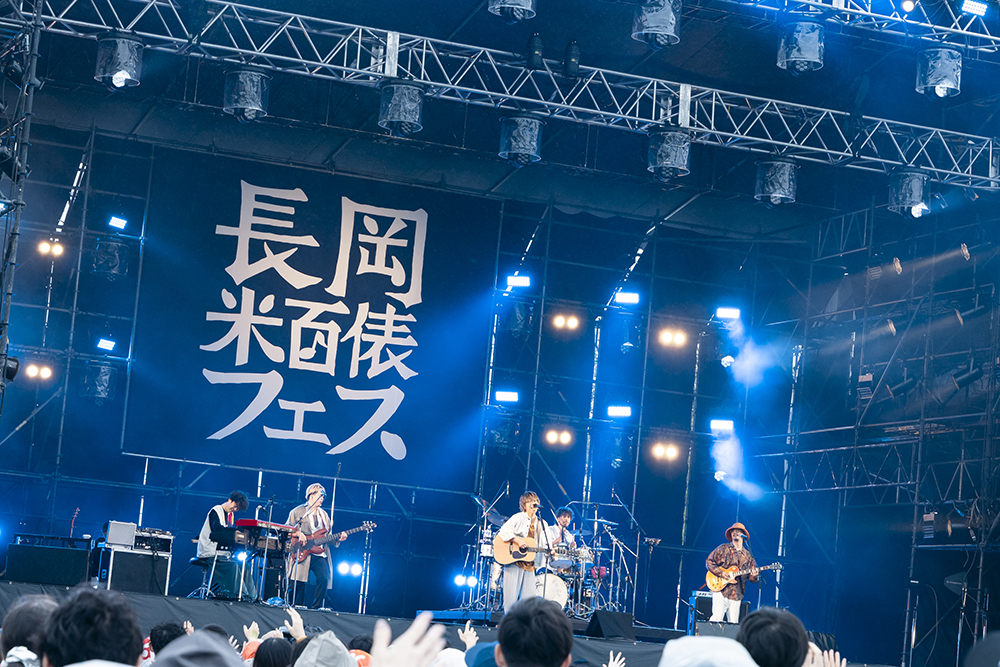 ジングルに合わせて登場したwacciは、ボーカル・ギターの橋口洋平が、中央にスタンバイすると「wacciです。新曲をやります」と第一声。ドキドキと高鳴る鼓動のようなドラムが印象的な「少年」で幕が開けた。和やかな空気に包まれた中、マーチングドラムと鍵盤の優しい音で始まった代表曲「恋だろ」では、聴き手がそれぞれの恋愛経験を重ねるように口ずさみながら、橋口の温かい歌声に合わせて体を揺らしていた。アウトロでは会場から「素晴らしい!」と声も飛んでいた。高揚感に包まれたオーディエンスに向け「来てくれた皆さん、楽しんでいますか。雨降ってなくないですか? 降ってないね。みんなの日頃の行いです。ありがとう」と笑顔で始まったMCでは「さっき女の子達に『キャー』って言われて、人生で浴びたことがないような『キャー』で、米フェスに何度か出演させていただいてきたから、知っていただける方が増えたのかなって幸せな思いでいたら、後ろにMA55IVE THE RAMPAGEさんがいて僕じゃなかったっていう。恥ずかしい思いをしました」と苦笑い。メンバーから「キャーって言ってあげてください」とフォローされると、「そうじゃなくて、めちゃくちゃかっこよかったから、だからバトンをつないでいきたいっていう」と「たくさんの出会いをつなげてくれた曲」とこちらも多くの支持を集める「別の人の彼女になったよ」を演奏。忘れることが出来ない恋人への思いが、長岡の空に広がっていった。