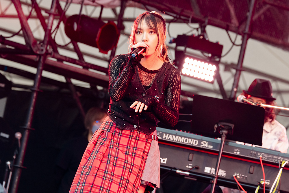 アジアでも活躍する女性シンガー、JUNNAのライブには、キュレーターの島田昌典がキーボードの奏者としてハウスバンドの演奏を支えた。幕開けの「我は小説よりも奇なり」ではイントロで「皆さん1曲目から一緒にジャンプして行きましょう!」と声を掛け、会場を引っ張っていった。「情熱モラトリアム」では「米フェス、一緒にクラップしていきましょう」と頭上で手拍子をしながら盛り上げた。