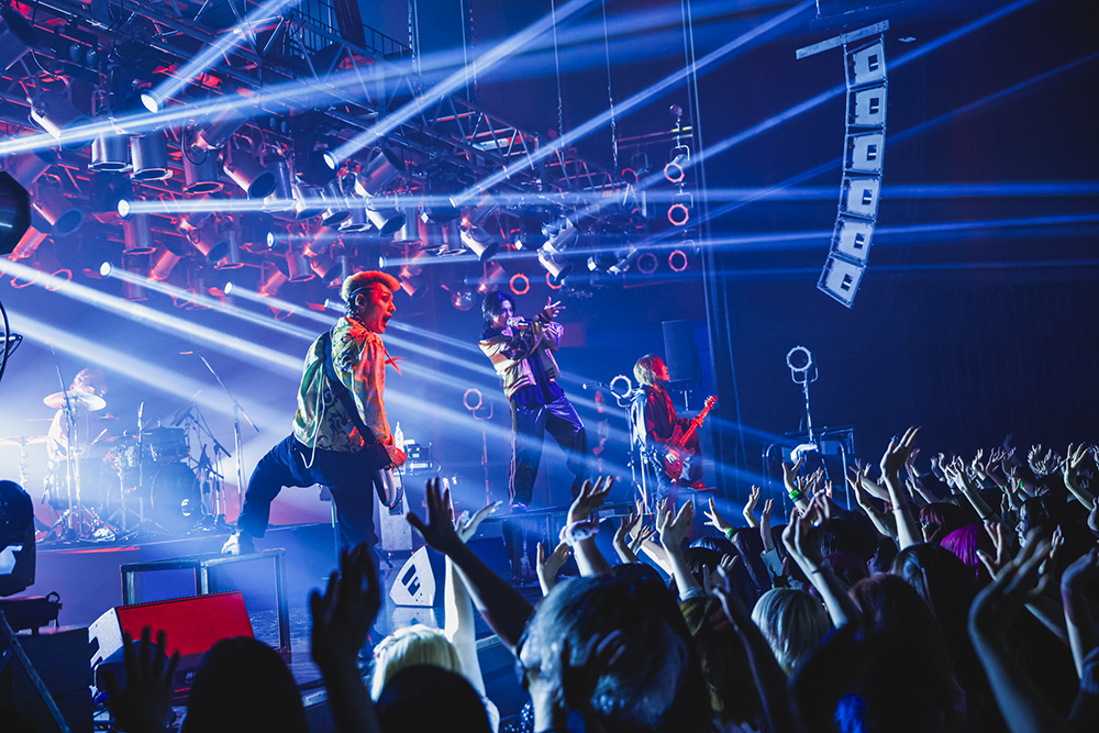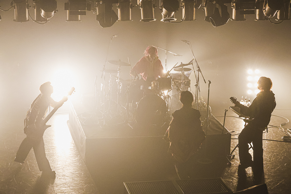 そんな言葉から届けられたのは、激情的に駆け抜けていく音の中でポエトリーリーディングを繰り広げる「なみだの後」だった。どうしようもなく心を蝕んでいく闇と、それでもその闇の中で確実に脈を打つ命と、闇の中でしか、闇の中だからこそ生み出すことができる言葉を紡ぎ、歌っていく覚悟を、絶叫する。そんな咲の言葉と共に激走する文、義、啓の演奏も凄まじいほどの熱量に満ち満ちていて、とてつもなくエモーショナルな空気が場内に漲っていた。「俺らはこんなところで負けてらんねえんだよ! 俺が俺自身の精神を凌駕する瞬間を目撃してくれ! 必ずまだやろうぜ! 何度でも! 連れて行ってやる!」と、この日のラストナンバーである「好きな人でしかイケません。」に到達。まさに命を削るように全身全霊のロングトーンを響かせるエンディングとなった。