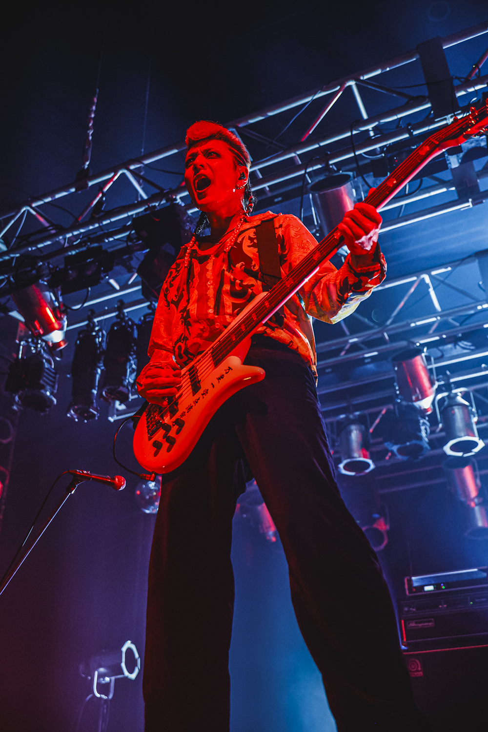 再び演奏に戻ると、フリを交えた「イタイ女」や「嘘キス」でオーディエンスを激しく踊らせていき、カラフルなライトが煌めいた「らぶみ」は、曲調はポップでキュートながらも、放つ音はしっかりエグいというギャップも楽しい。そこから「熱く行こうぜ!」と咲が告げると、「蝶王」「ヒス症」を畳み掛け、再びピークを目指して走り始めた。「一秒一秒全部持って帰りたい、こんな奇跡みたいな空間ないから」と、胸の内をまっすぐにフロアに語りかけた咲は、続く「だいじょばない」ではマイクを両手で握りしめ、俯きがちに言葉を吐き出していく。さらに「暴動」「勝て」とハードナンバーを連発。ヘッドバンギングとコール&レスポンスの嵐が巻き起こり、バンドもオーディエンスも限界を突破していくようにお互いを激しく求め合う。その熱狂の中心で叫び上げていた咲は、目の前にいる1人ひとりを、そして何よりも自分自身を鼓舞しているように見えた。