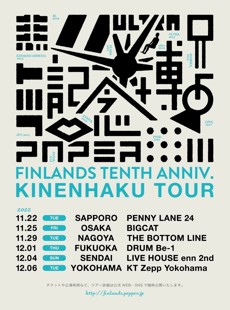 今年の11月で10周年を迎えるFINLANDSが、全国6都市を巡るライブツアー『FINLANDS TENTH ANNIV.〜記念博TOUR〜』の開催を発表した。