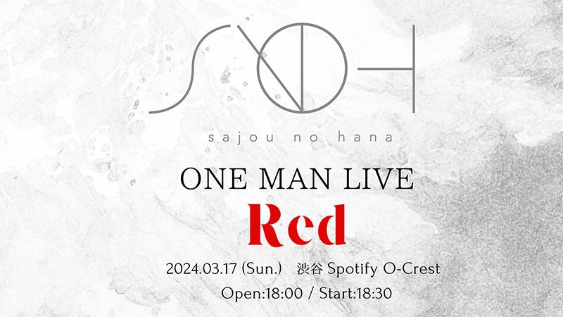 2024年1月より新体制での活動を発表したsajou no hanaのワンマンライブ「sajou no hana ONE MAN LIVE 『Red』」が決定!2024年3月17日(日)Spotify O-Crestにて開催する。