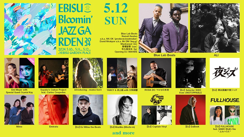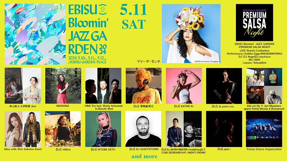 5月10日(金)「黒田卓也 & special guest 9m88 」「SHINICHI OSAWA -MONDO GROSSO DJ SET- Produced by クリス・ペプラー」、5月11日(土)「マリーザ・モンチ」「PREMIUM SALSA NIGHT-」、5月12日(日)「Blue Lab Beats」もチケット一般発売中。5月12日(日)「ALI」はチケット先行販売中。
