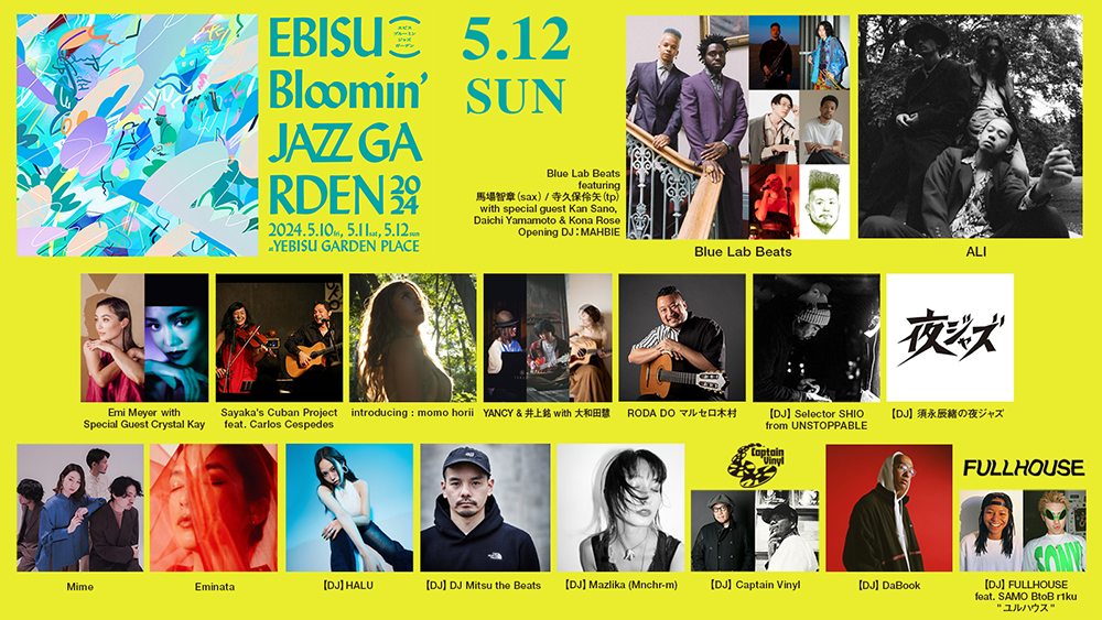 5月12日(日)ザ・ガーデンホールにて行われる「Blue Lab Beats」のスペシャルゲストとしてKan Sano、Daichi Yamamoto、Kona Roseの3組の出演が決定した。