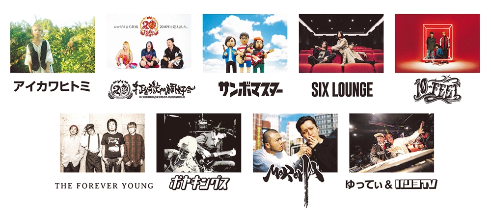 今回発表されたのは、アイカワヒトミ/打首獄門同好会/サンボマスター/SIX LOUNGE/10-FEET/THE FOREVER YOUNG/ザ・ボヤキングス/MOROHA/ゆってぃ&バリ3TVの9組。