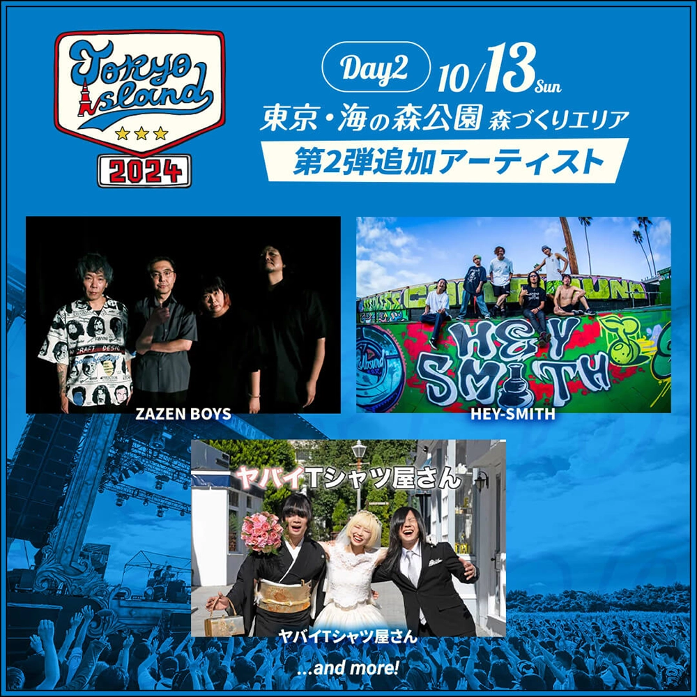 東京・お台場地区の東京湾に浮かぶ新たな埋立島「海の森公園 森づくりエリア」にて開催する音楽フェスティヴァル『TOKYO ISLAND』(トーキョー・アイランド)が、出演アーティスト第2弾を出演日とともに発表した。今回発表された出演アーティスト第2弾は合計10組。