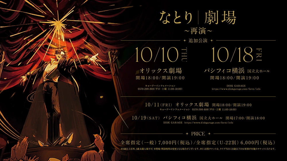 これから最も活躍が期待される、ストリーミング総再生回数は約5億に迫る勢いを誇る極めて異例なアーティストである“なとり”が、自身初のアルバム「劇場」を引っ提げて行った初のワンマンライブをホール規模に拡大して、再演。