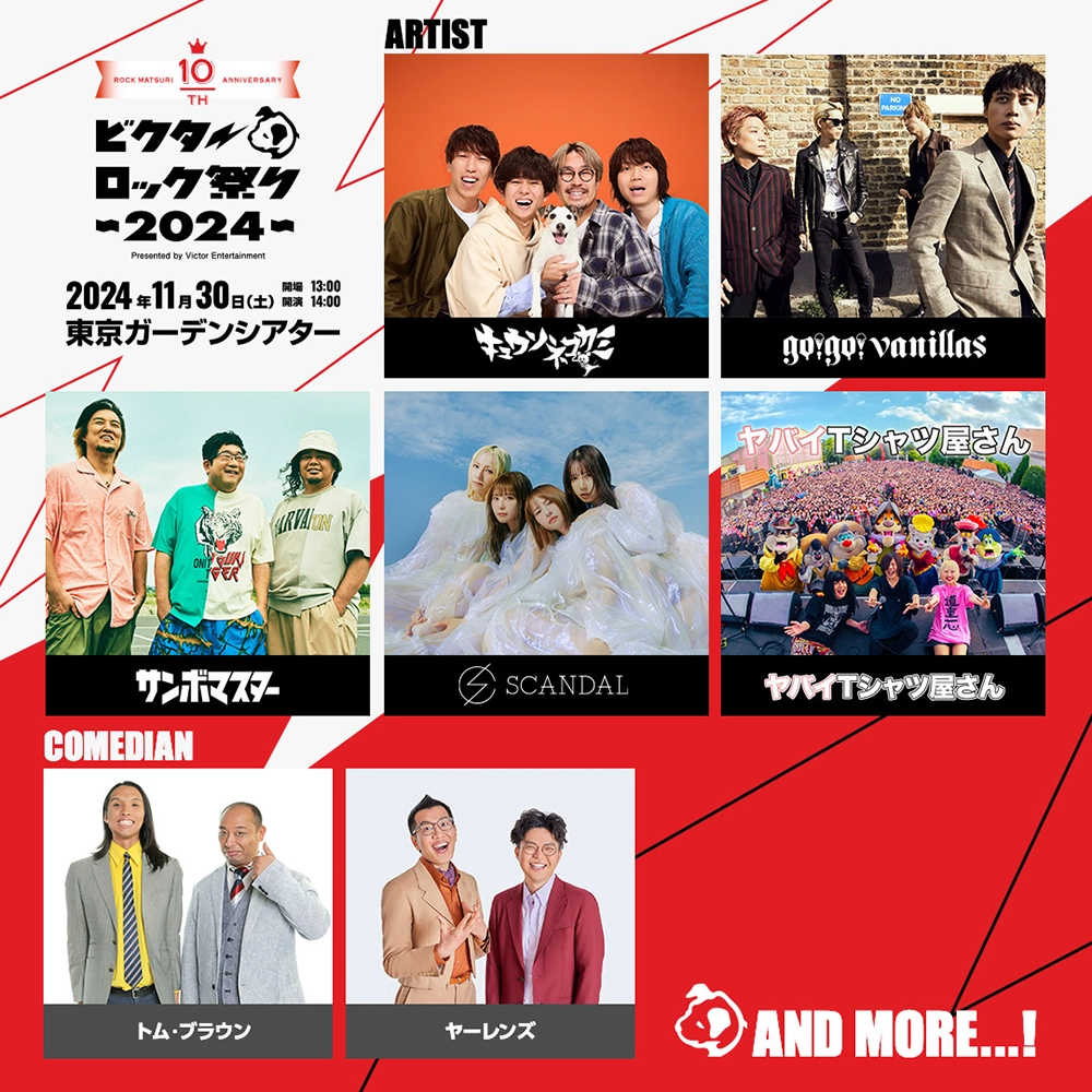 ビクターエンタテインメント主催のロック・フェスティバル「ビクターロック祭り」が10周年を迎え、開催時期、会場も一新し「ビクターロック祭り2024」として、2024年11月30日(土)東京ガーデンシアターで開催される。