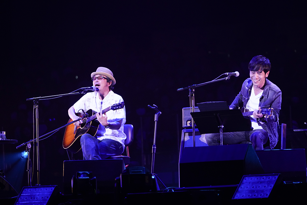 というわけで、「野ばら」「ロボッチ」「何と言う」の3曲を歌唱し、改めて吉井和哉を呼び込む。さっきの段取りミスのおかげで、いかに自分とスタッフたちが裏でバタバタしたかを説明する吉井。「いや、俺はもうあのまま順番を逆にしたらいいと思って」と言うOTに、「逆にならないよ! 冷静に考えてみてよ!」と返し、爆笑を取る。曲はTHE YELLOW MONKEYの「LOVE LOVE SHOW」。イントロで入る「おねえさん!」は、ふたりで声を揃えて叫んだ。