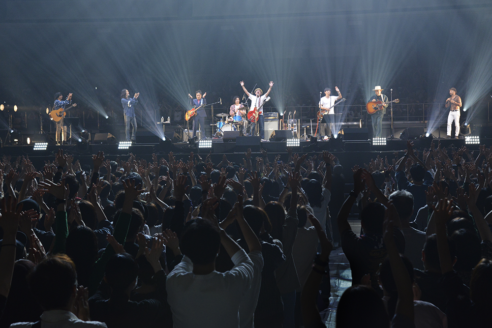 「そしたらこんなことになりました、みなさんほんとにありがとう!」とゲストたちに感謝を伝え、「これからもなるべくひとりでやらないよう、誰かと、誰かと!」と叫んでから、全員をバックに、「イージュー★ライダー」を歌った。