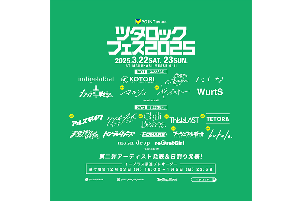 本日、ツタロックフェス 2025の出演アーティストの第2弾及び日割りの発表がされた。