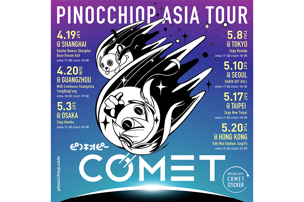 ピノキオピー初のアジアツアー「ピノキオピー ASIA TOUR "COMET"」の開催地として上海、広州、大阪、東京に加え、ソウル、台北、香港での開催が決定した。