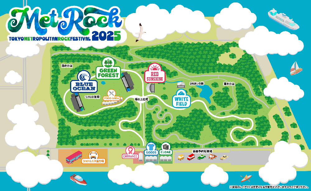 今回、当日2日間のタイムテーブルを発表された。また会場が変わることを受けて、ステージも一新され、「Brand New METROCK!!!」とし、BLUE OCEANとGREEN FORESTの2つのメインステージ、そしてRED SUNSHINE、WHITE FIELDを含む計4つのステージでライブを行う。