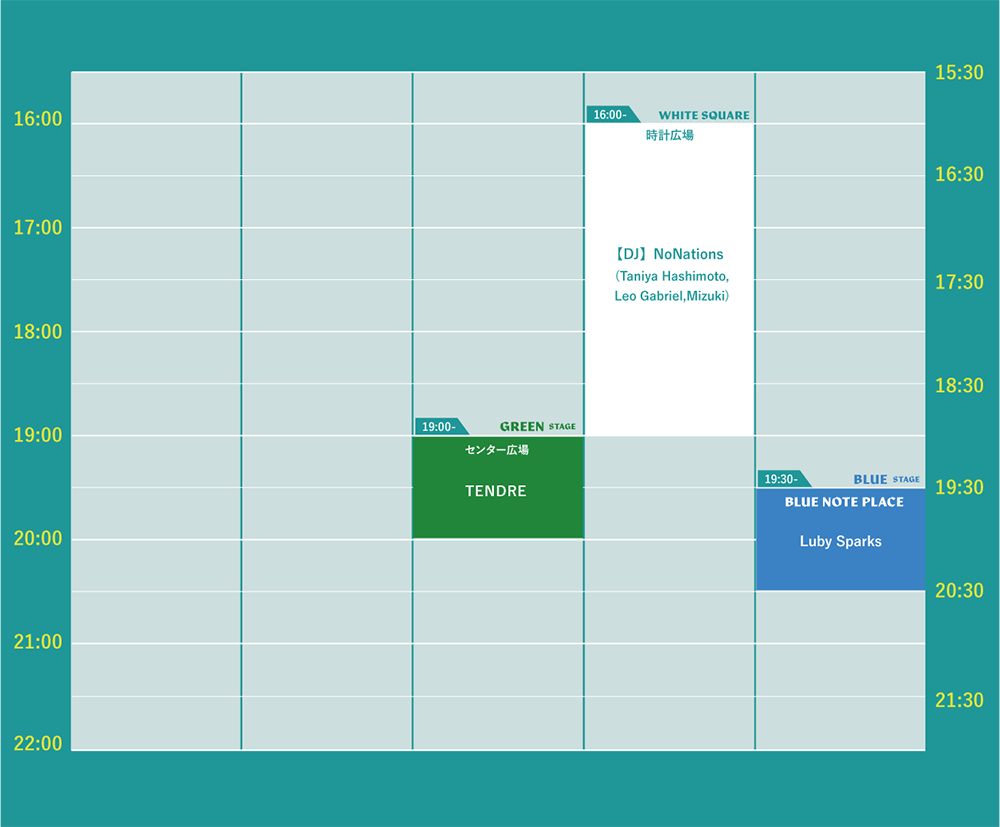 ※センター広場(GREEN STAGE) 、時計広場(WHITE SQUARE)、