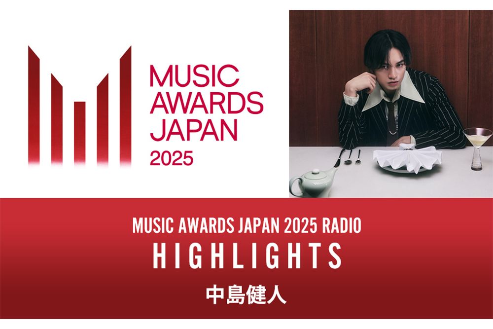 音楽業界の主要5団体(日本レコード協会、日本音楽事業者協会、日本音楽制作者連盟、日本音楽出版社協会、コンサートプロモーターズ協会)が垣根を越えて設立した、一般社団法⼈カルチャーアンドエンタテインメント産業振興会(CEIPA)によるアワード「MUSIC AWARDS JAPAN」(MAJ)は、2025年5月21日(水)・22日(木)にロームシアター京都で開催された授賞式を経た特別番組を、6月9日(月)から全国の民放ラジオ99局にて順次放送することを決定した。ラジオ特番のナビゲーターは、MAJの授賞式会場でレッドカーペットアンバサダーをつとめた中島健人が担当する。