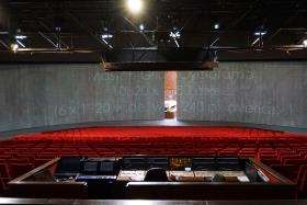 - 客席を取り囲むスクリーンが開くと、大きく広がるステージが現れる。