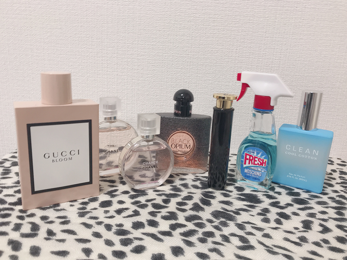 私は匂いフェチで収集癖があるので、香水を集めてます。好きな匂いの香水には目をつけて、いろんな香水と嗅ぎ比べて、使うか、使わないかをよく考えて買うようにしてて。でも、もう10何個あって。最近のお気に入りは、ちょっと大人なんですけど、誕生日に買ってもらった、グッチの新しく出たブルーム。ジャスミンの香りがするんですよね。さっぱりしつつ甘くて、優しいお花の匂いがして好きですね。