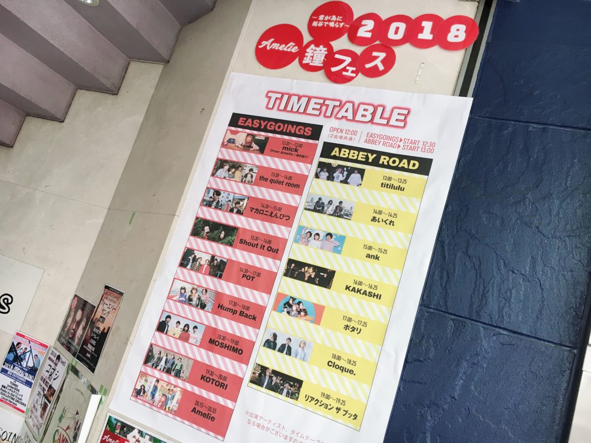 【Amelie】鐘フェス 2018 ~君が為に越谷で鳴らす~ @越谷EASYGOINGS、越谷ABBEY ROAD (2018年6月16日の現場)
